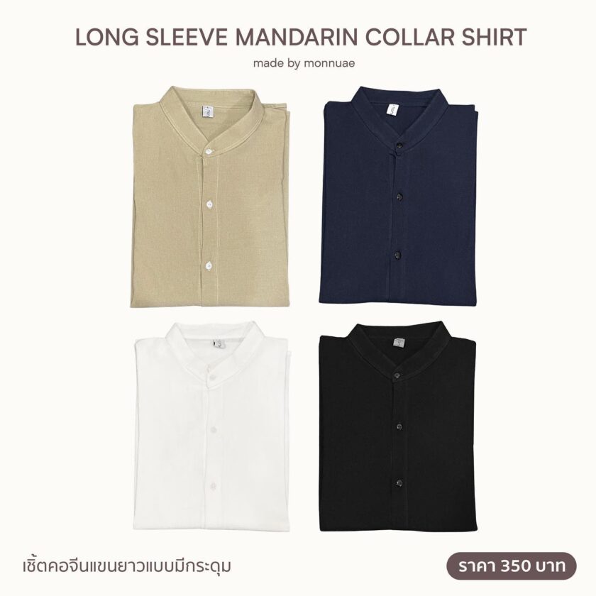 LONG SLEEVE MANDARIN COLLAR SHIRT🧺 เชิ้ตแขนยาวแบบมีกระดุม