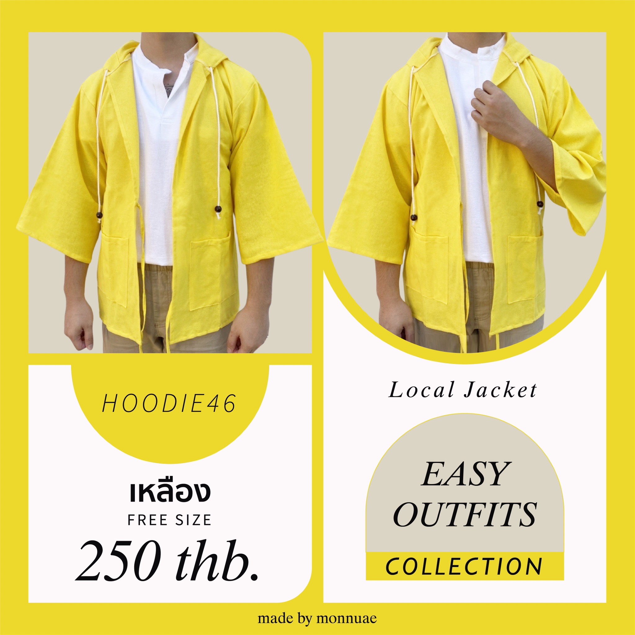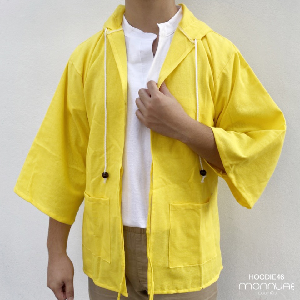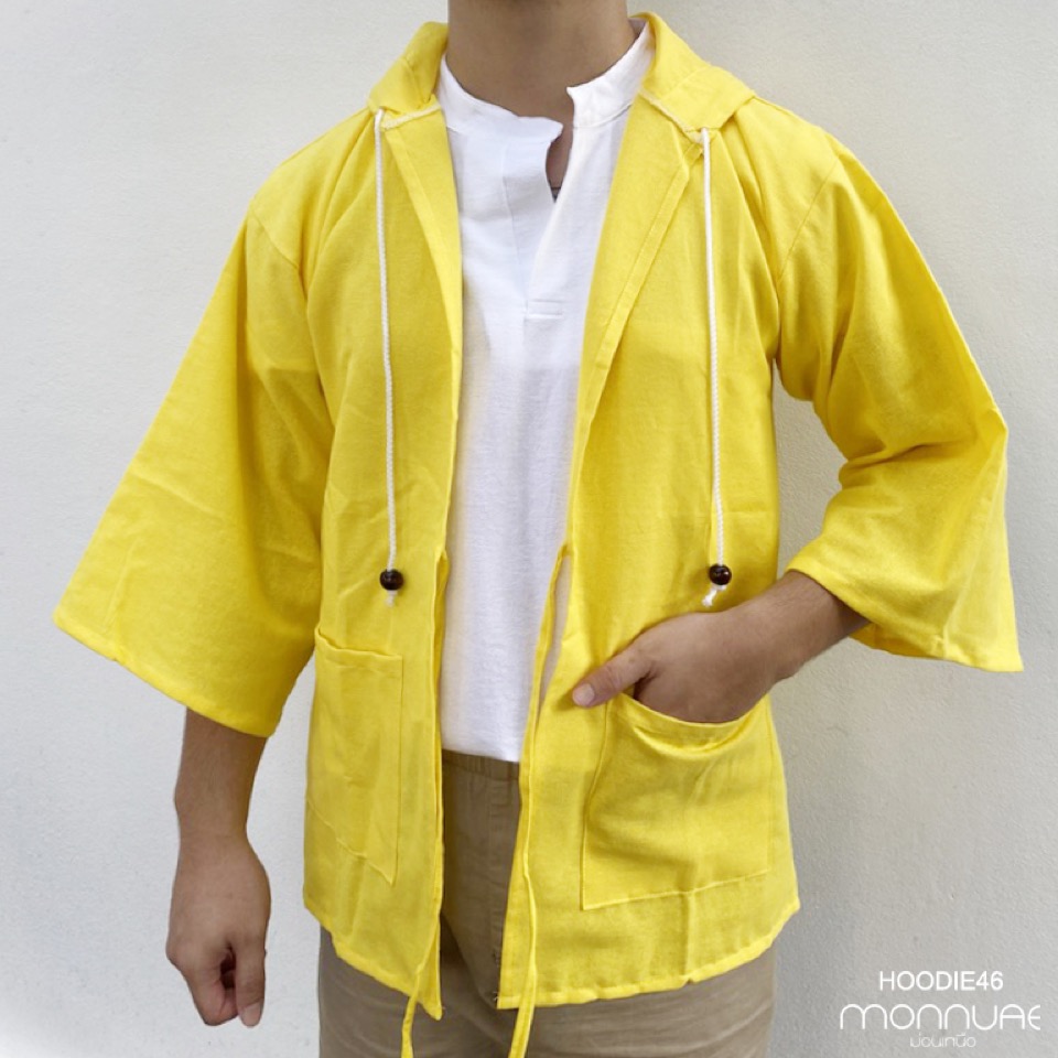 เสื้อคลุมแบบมีหมวก ผ้าฝ้าย สีเหลือง : (Hoodie Yellow)