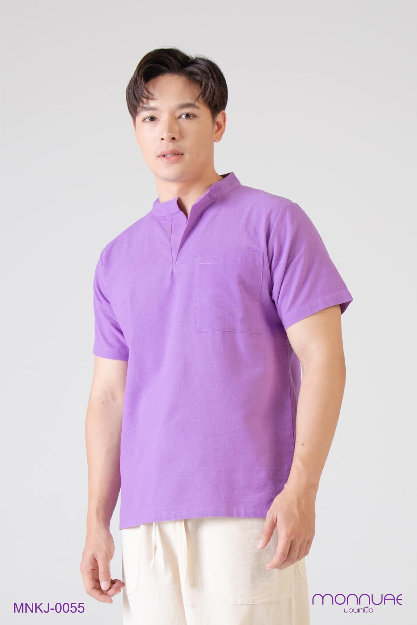 เสื้อคอจีนแขนสั้น ผ้าฝ้าย สีม่วง : (Mandarin collar short :Violet)