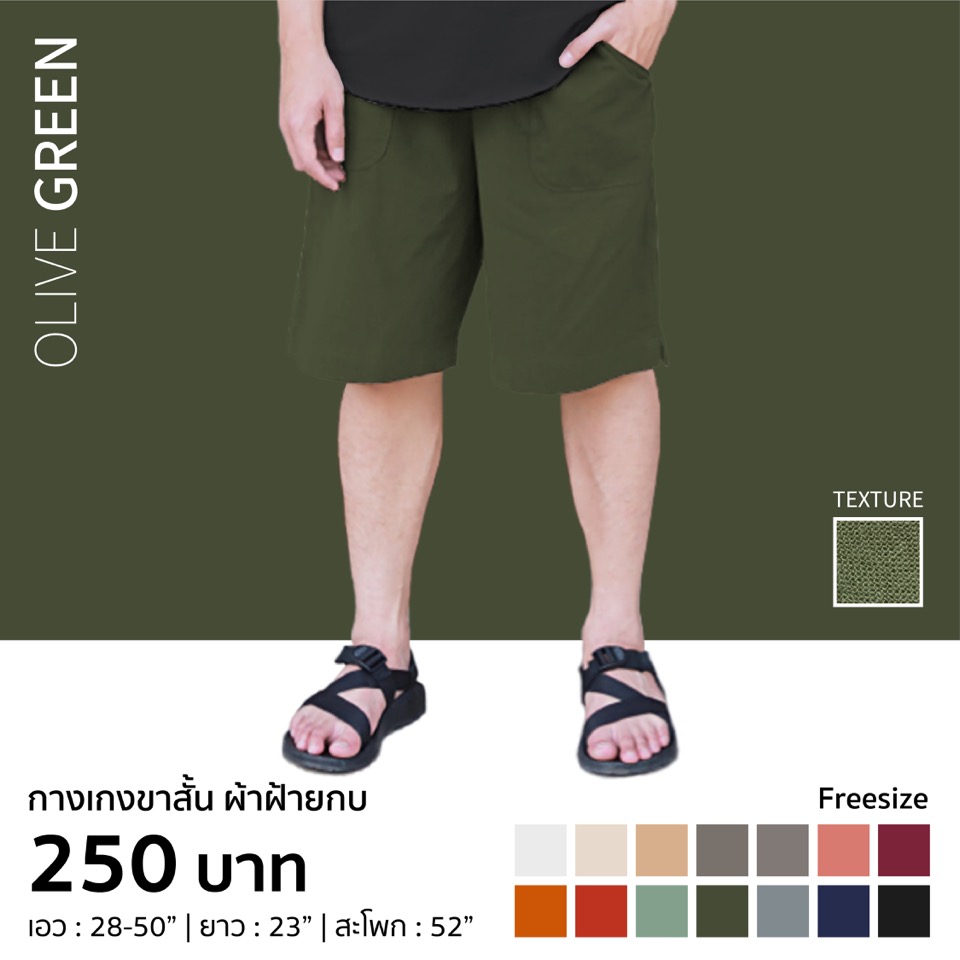 🏖🩳กางขาสั้น ผ้าฝ้าย ทรงกระบอกใหญ่ 🩳🏖 สี : เขียวขี้ม้า (Olive Green)